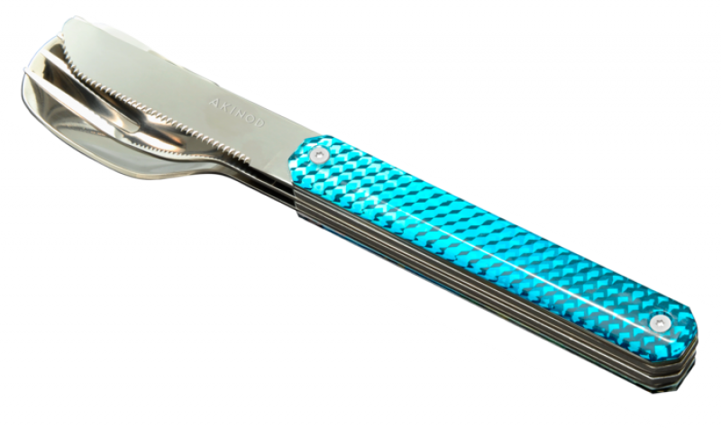 Les couverts Akinod 13h25 sont pliants et multifonctions. Ils sont également indispensables à la vie quotidienne. Cet objet vous permet d’avoir avec vous un couteau, une cuillère, une fourchette, un tire-bouchon, un ouvre boîte et un décapsuleur le tout dans un seul outil ! Il vous accompagnera lors de vos déjeuner, de vos weekends et même les vacances.