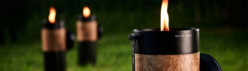 Les torches Aristo comme les flambeaux suédois ou les bougies torches bois et metal des designers Ester et Erik sauront vous apporter une ambiance unique à votre extérieur.